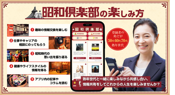 LINEを使用した無料登録&匿名利用の、50代、60代、70代向けのマッチングSNSです。