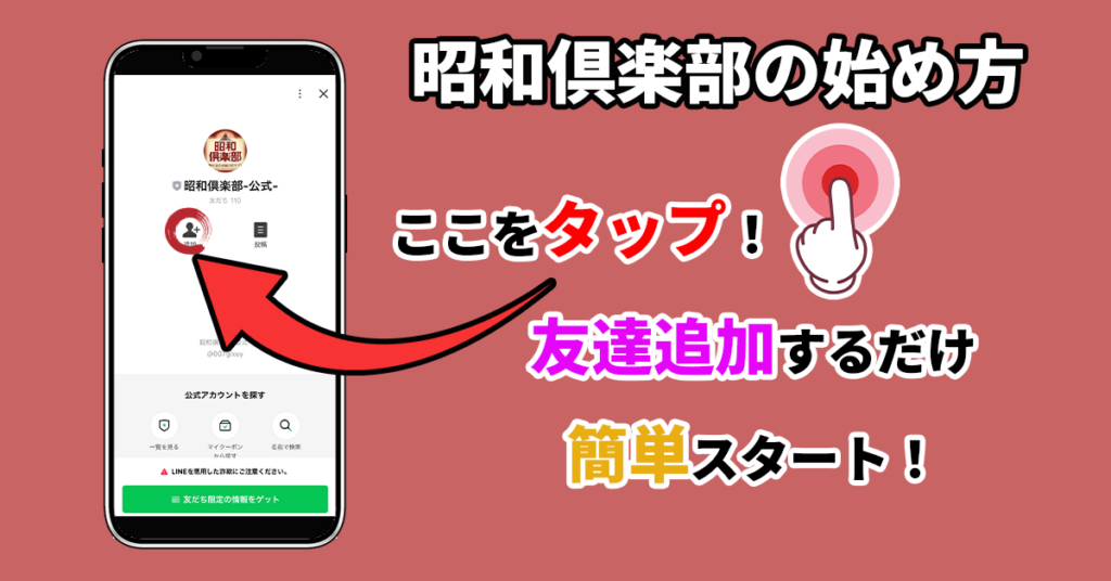 まずは昭和倶楽部の公式LINEを友達追加!その後本登録にお進みください。